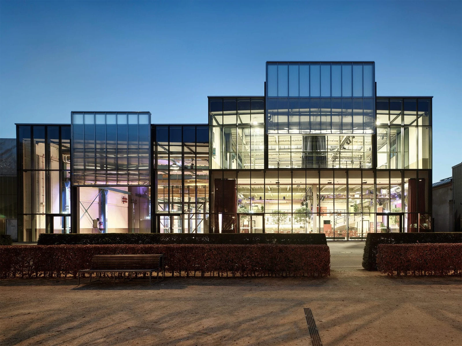 A concert hall constructed from simple and inexpensive spruce wood was inserted as a wooden box in a former production hall. In the intermediate area outside the wooden vessel and within the industrial building’s walls, visitors see the raw and honest character of the elementary wooden construction.