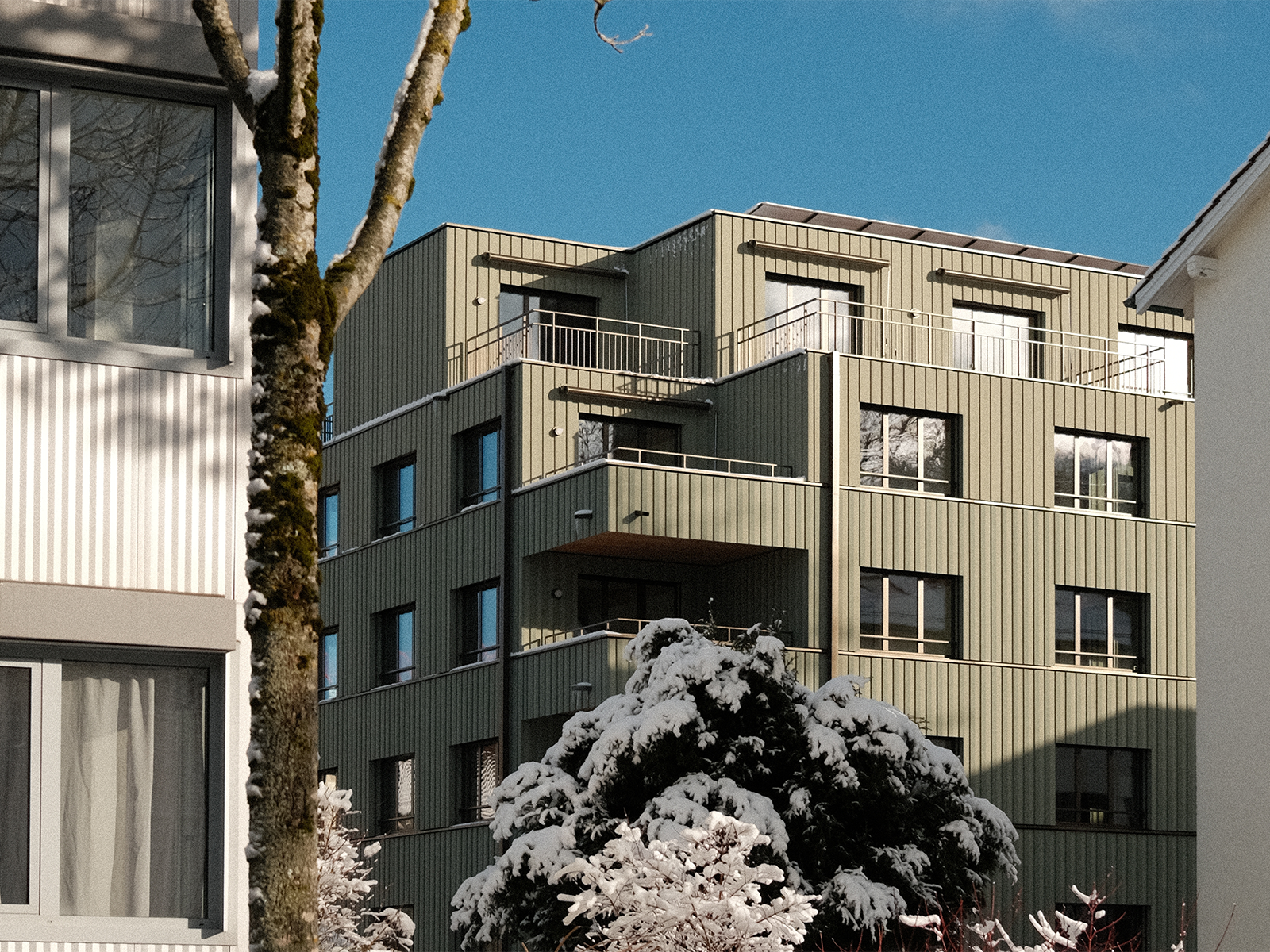 The characteristic urban morphology of the Heuried residential district was established in the 1940s post-war building boom, when perimeter developments transitioned to housing blocks, providing park-like residential settings. The intervention's typology embodies an essentially linear design.