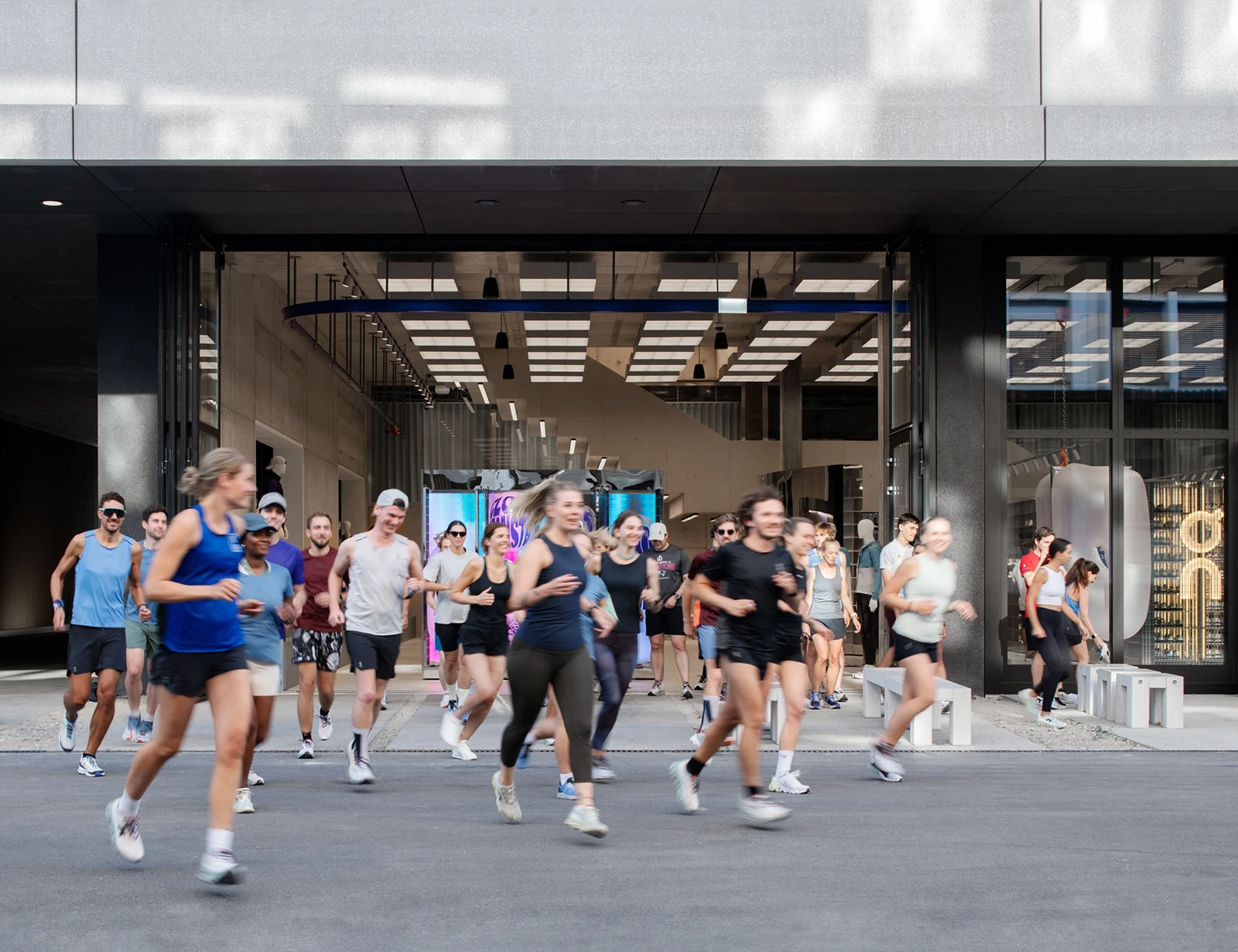 This interior fit-out for On reflects the architectural logic of the building as a whole and forms a spatial link between the two different worlds of product development housed within: the “lab”, which occupies the structure’s four-storey base, and the “neighbourhoods” above, where marketing, logistics, and sales activities take place.