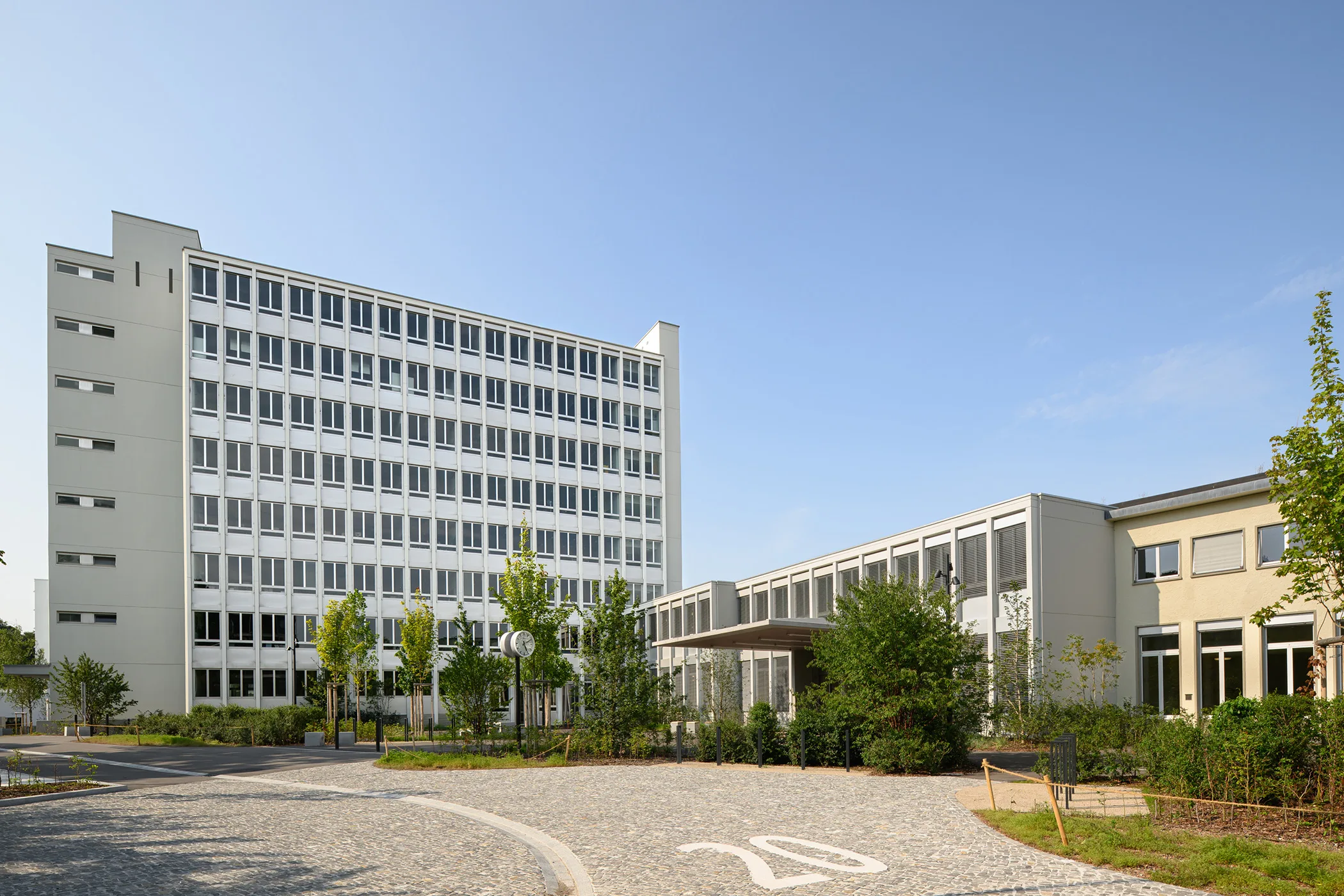 Through this intervention, the main building, the ancillary building, and the new basement are merged into one unit, while at the same time, the independent expression of the individual parts is strengthened.