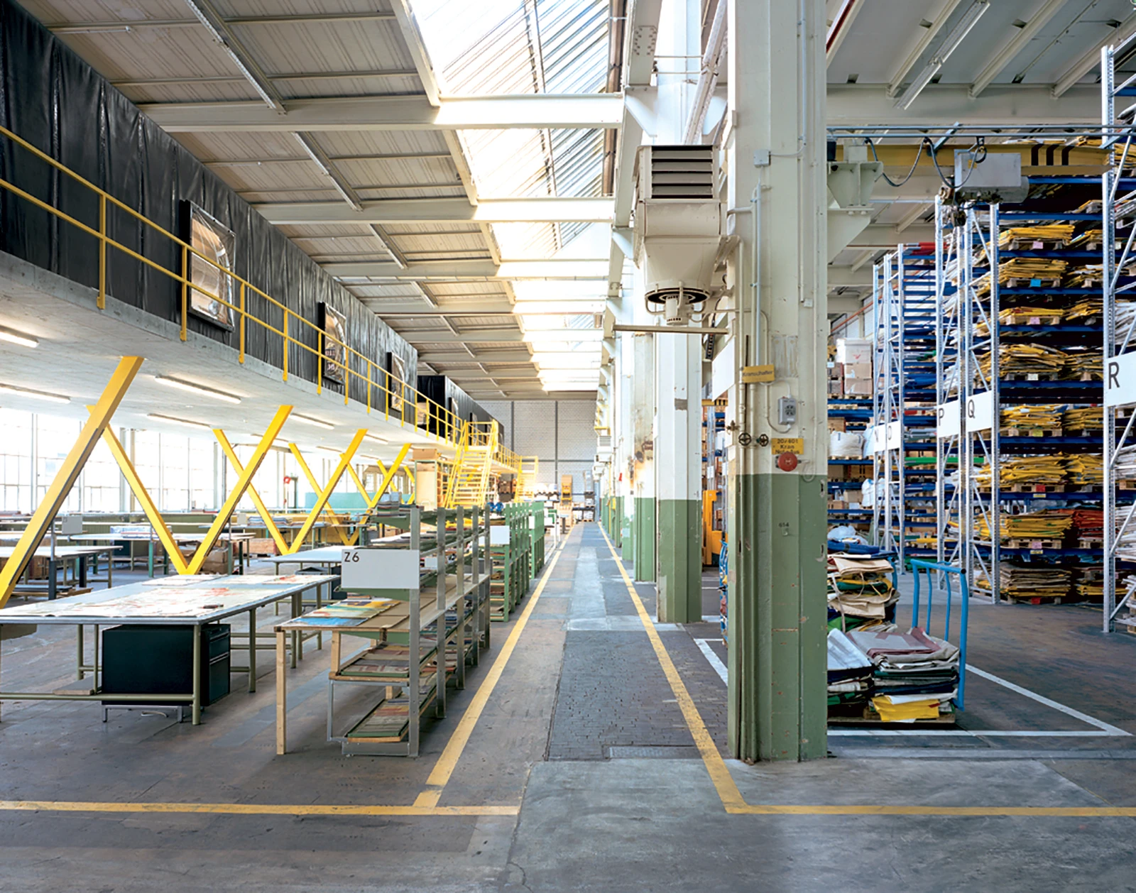 Producing Freitag's iconic bags demands a significant amount of space – about 2,780 square meters for handling the used truck tarps, from receiving, laying out, trimming, washing, rolling, cutting, sorting, assembling, and sewing them into bags and other products, concluded by their photographing, storing, packaging, re-storing, and ultimately, shipping.