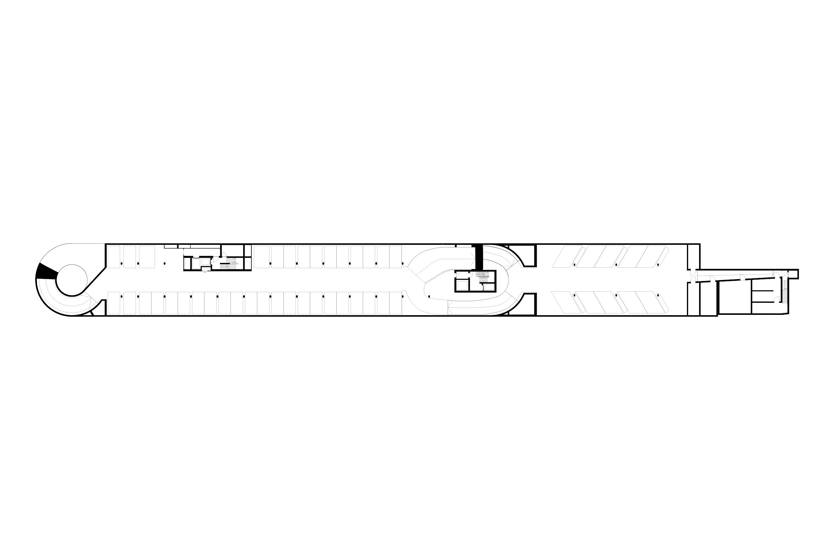 The commercial building integrates public underground Park & Ride facilities, as well as segments of the car wash. Commercial and retail spaces can be found on the ground level, while the attic accommodates a restaurant with expansive views over the lake.