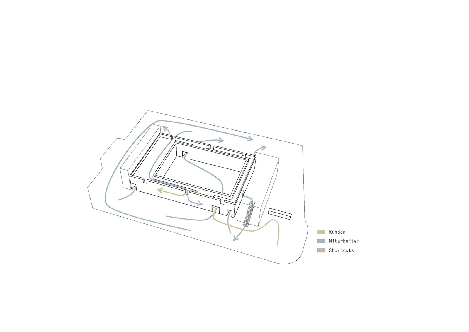 spillmann echsle’s design for the new headquarters of Wüest & Partner expands the spatial concept of 'ring within a ring'. This reference to the site’s origins creates a link between the historical past and its future usage by an international company.