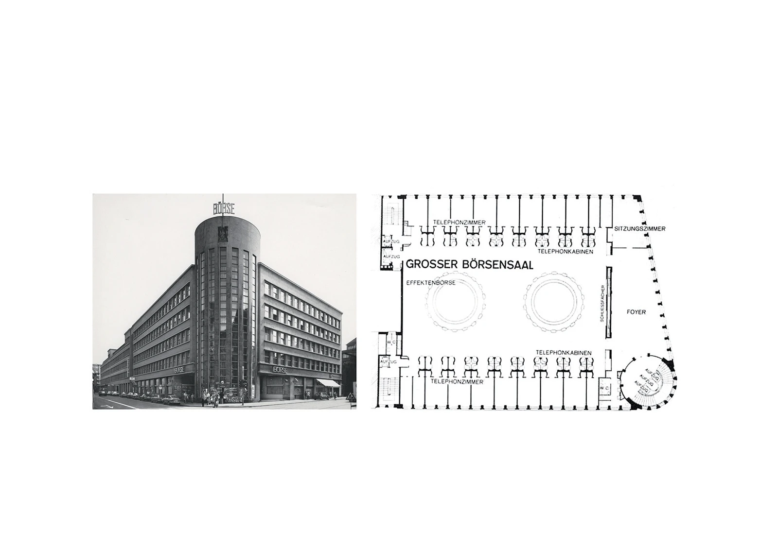 Built at the end of the 1920s by Henauer Witschi, the Alte Börse building in Zurich is now a landmarked historical site. It is defined by its circular floor plan, which is formed by a steel structure and a glass roof that illuminates the space.