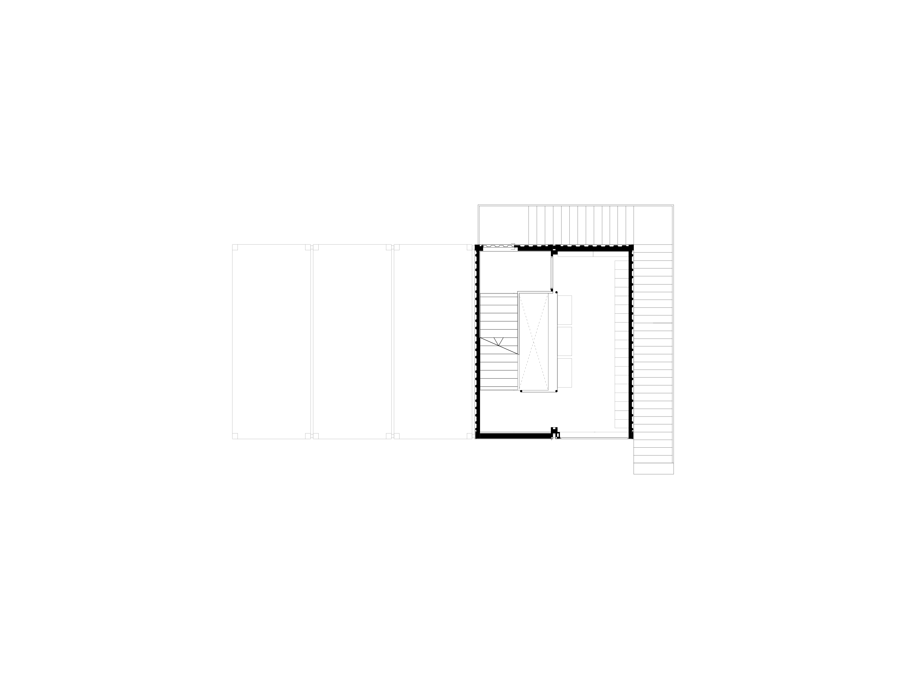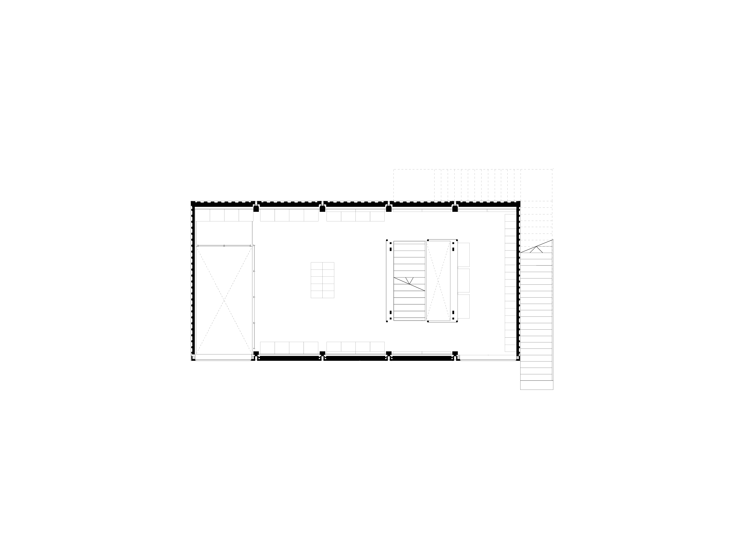 By detaching longitudinal walls and ceilings, a generous, open sales area is constructed over the first four storeys, transforming the containers into a single thermal and fire-safety unit, inside which the various products are presented, sold and stored.